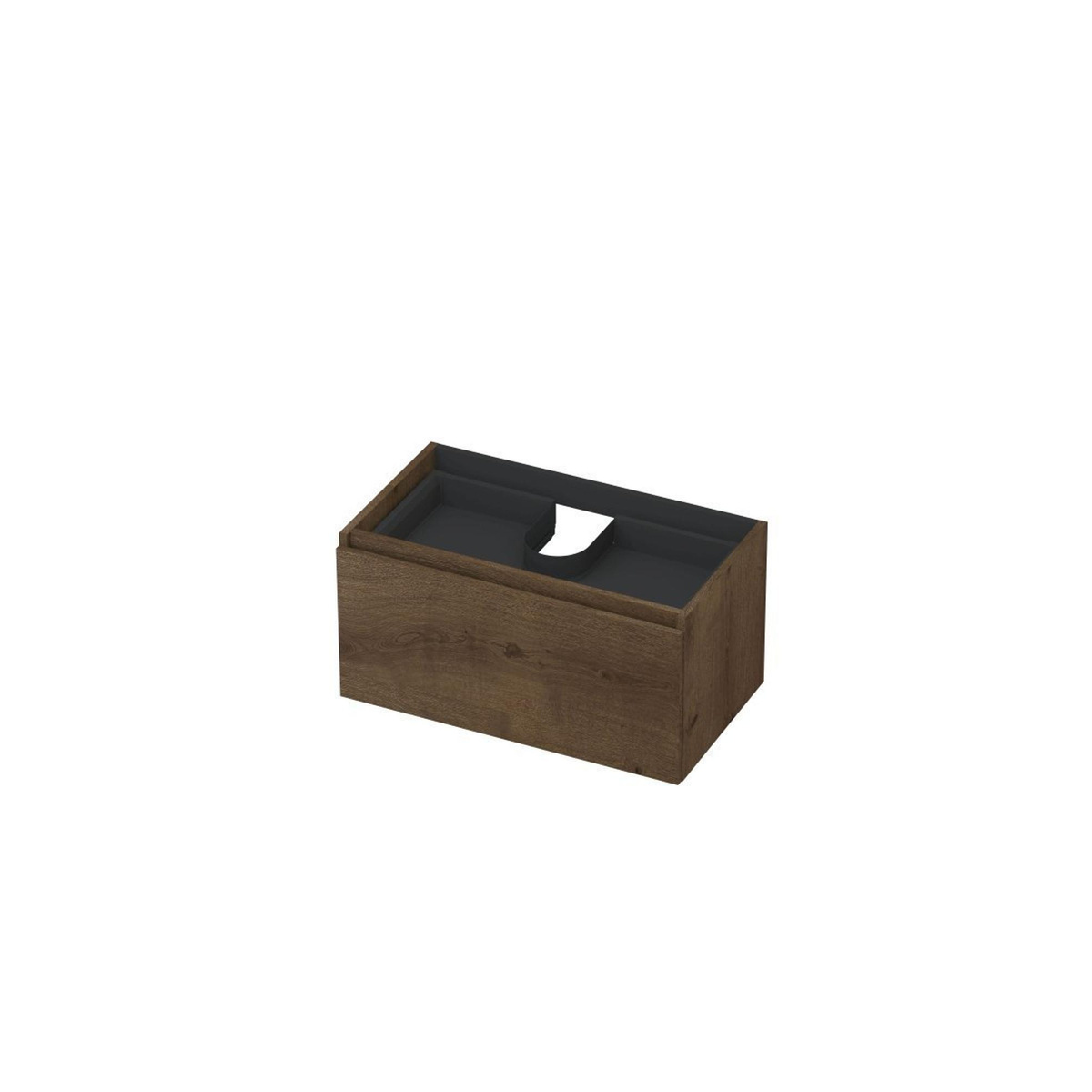 INK Fineer wastafelonderkast 80x40x45cm 1 lade greeploos houten keerlijst Fineer Houliecor Chocolate inclusief binnenlade