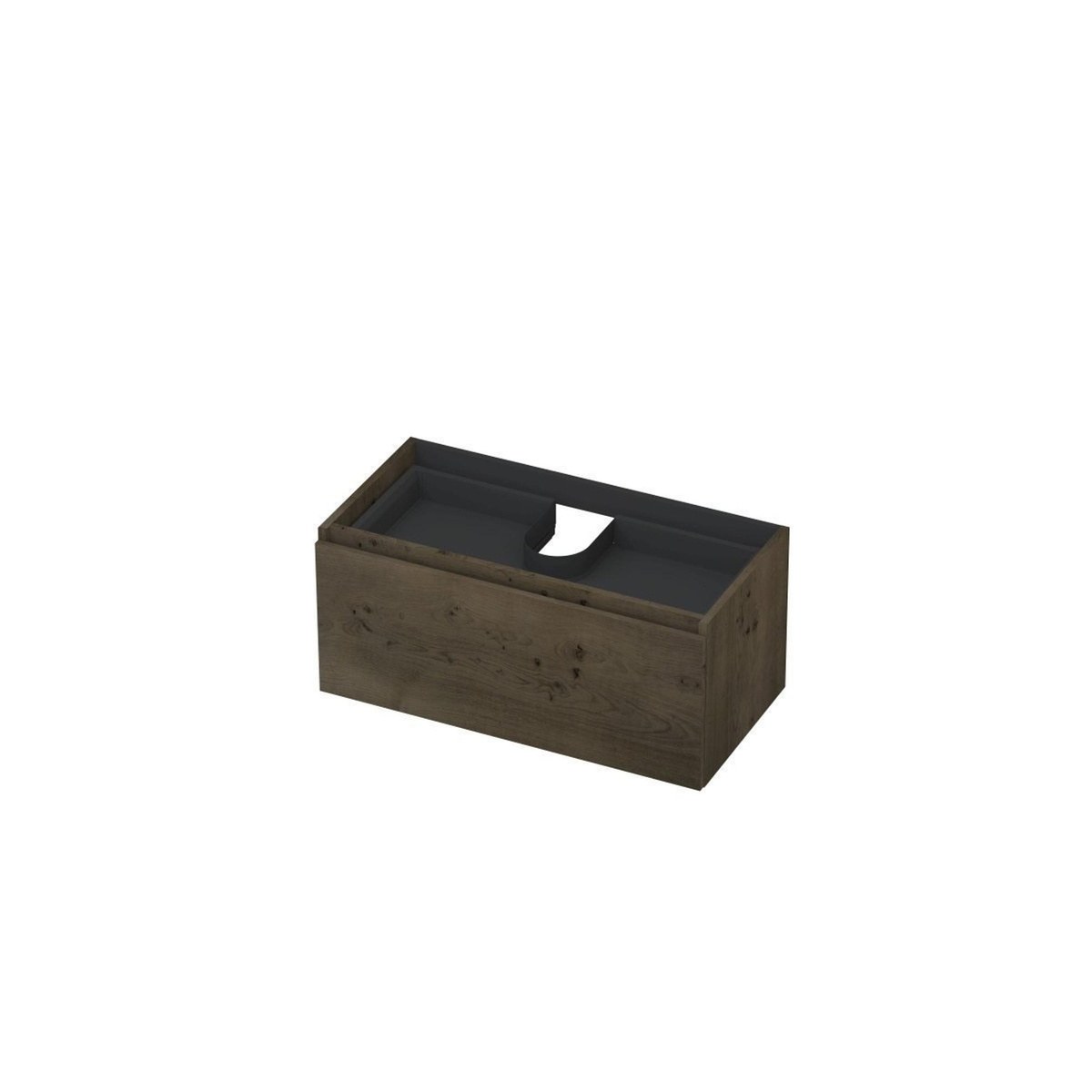 INK Fineer Wastafelonderkast - 90x45x40cm - 1 lade - binnenlade - greeploos - houten keerlijst - MDF Fineer - Charcoal