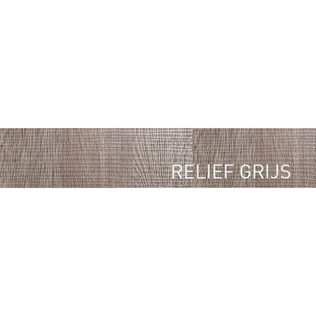 De kast is gemaakt van MDF en heeft een mooie Relief grijze kleur, waardoor hij een moderne uitstraling heeft. Het MDF materiaal is stevig en duurzaam, waardoor je lang plezier zult hebben van deze kast. De kast heeft één deur met grepen en biedt daardoor genoeg opbergruimte voor al je badkamerbenodigdheden.