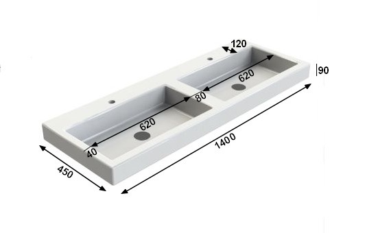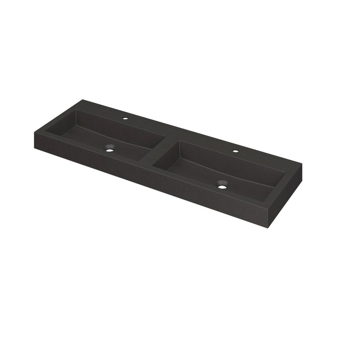 INK Momento wastafel - 140x45x9cm - 2 wasbakken - 2 kraangaten - Quartz zwart