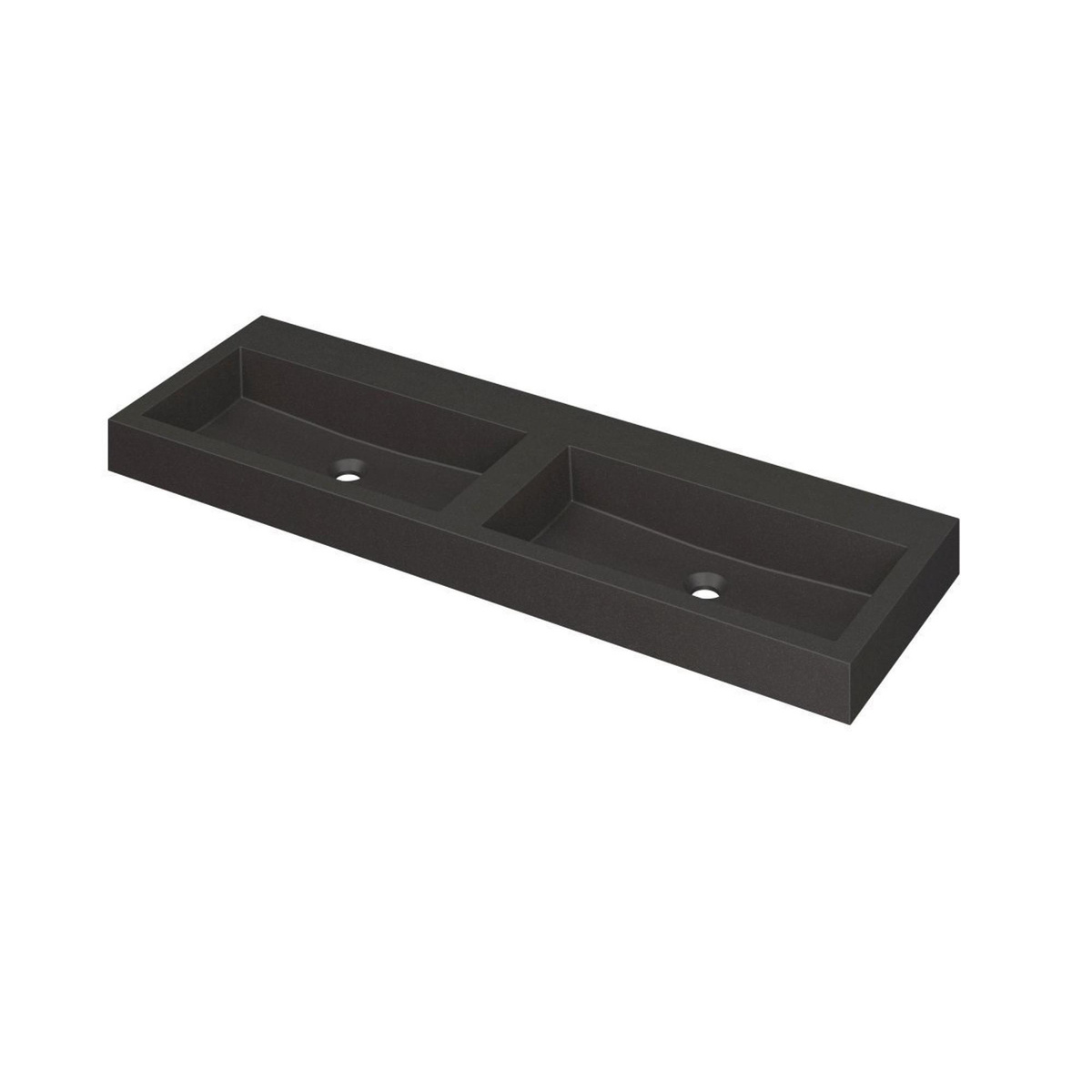 INK Momento wastafel - 140x45x9cm - 2 wasbakken - 0 kraangaten - Quartz - zwart