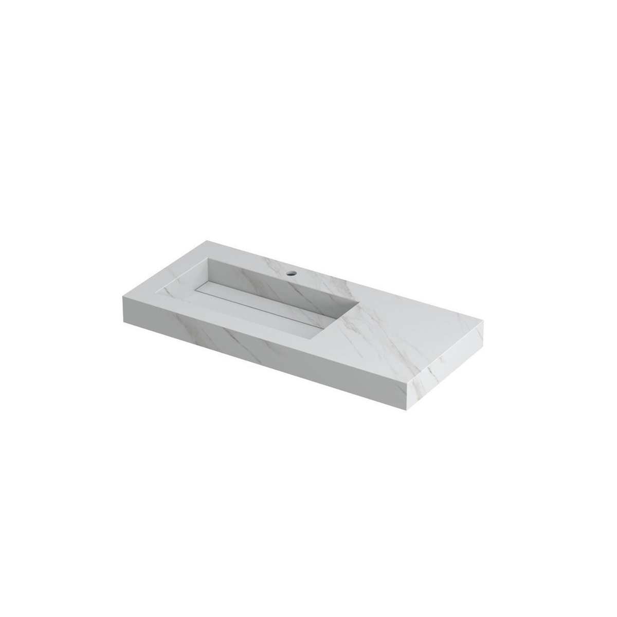 INK Pitch wastafel - 100x45x9cm - 1 wasbak links - 1 kraangat - drain keramiek - Calacatta mat