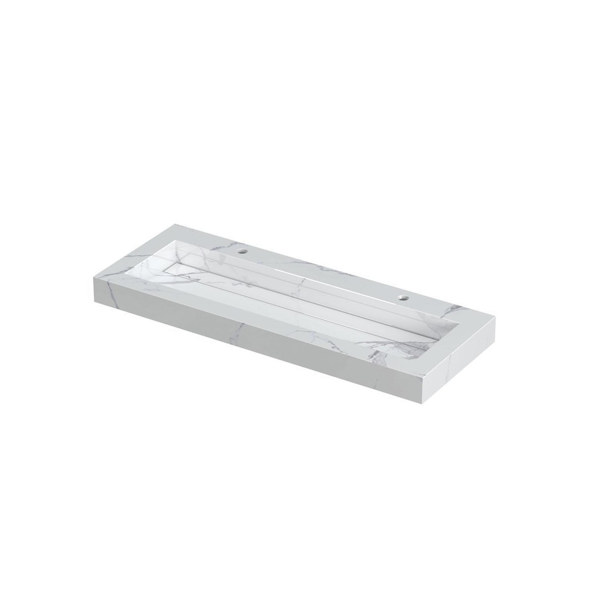 INK Pitch wastafel - 120x45x9cm - 1 wasbak - 2 kraangaten - drain keramiek - Statuario glans