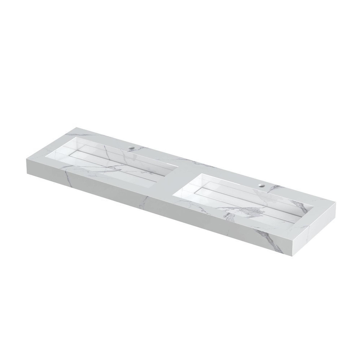 INK Pitch wastafel | 160 | 2 wasbakken | Links en Rechts | 2 kraangaten | Statuario glans