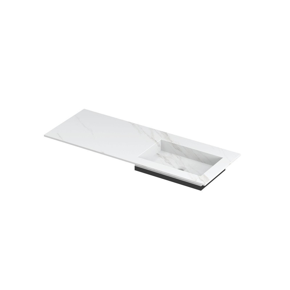 INK Post wastafel - 120x45x1cm - 1 wasbak rechts - 0 kraangaten - keramiek - Calacatta mat