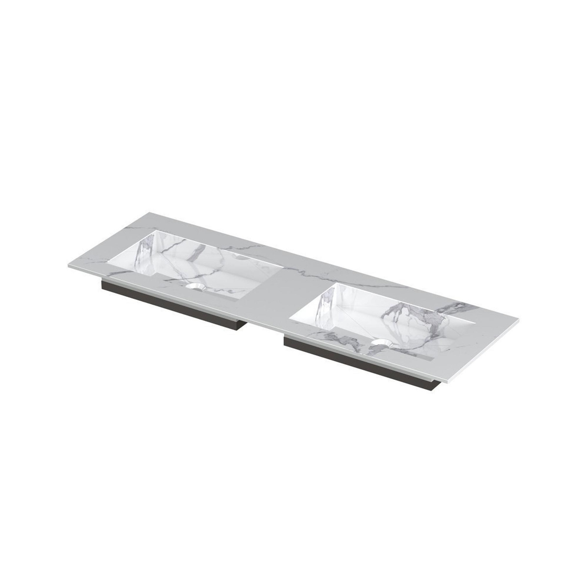 INK Post wastafel - 140cm - 2 wasbakken - Links en Rechts - 0 kraangaten - Statuario glans
