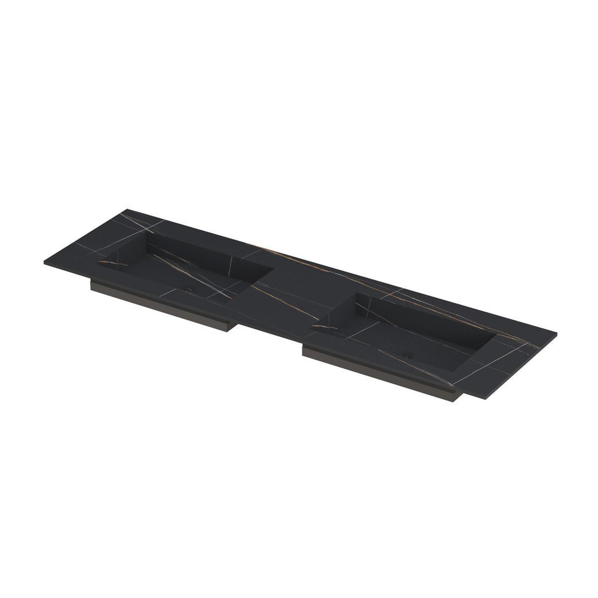 INK Post wastafel - 160cm - 2 wasbakken - Links en Rechts - 0 kraangaten - Lauren black mat