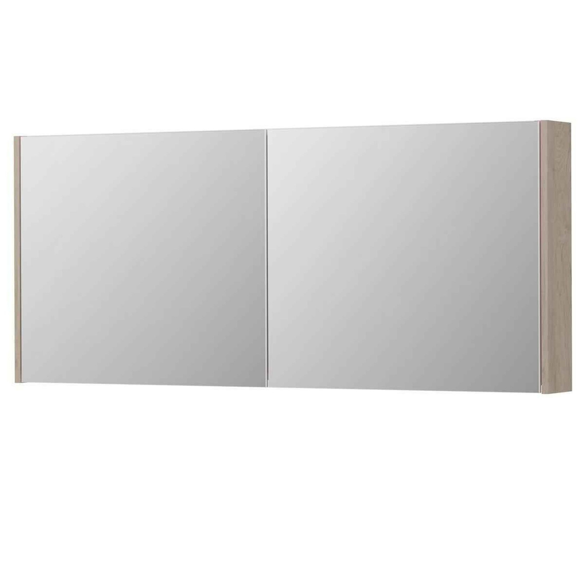 INK SPK1 Spiegelkast - 140x14x60cm - 2 deuren - dubbelzijdige Spiegel - schakelaar en stopcontact - MFC - Ivoor eiken