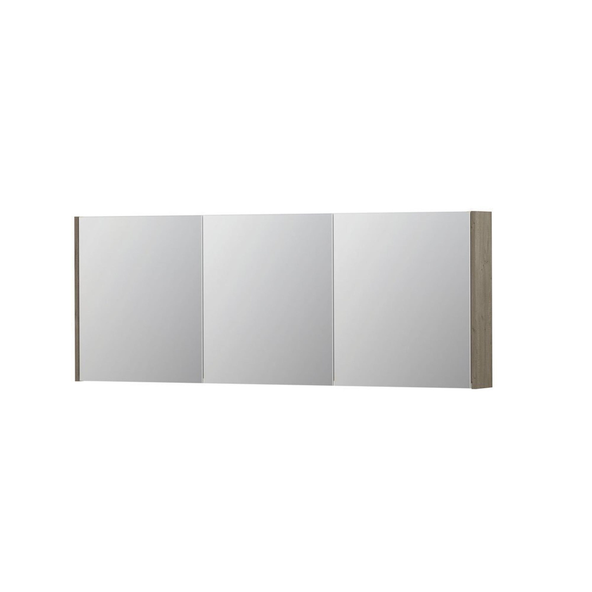INK SPK1 Spiegelkast - 160x14x60cm - 3 deuren - dubbelzijdige Spiegel - schakelaar en stopcontact - MFC - Greige eiken
