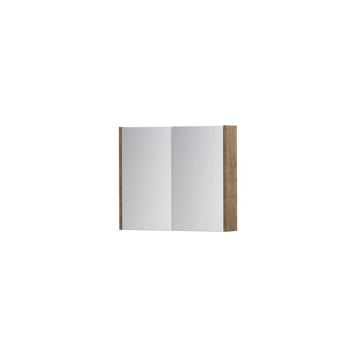 INK SPK1 Spiegelkast - 70x14x60cm - 2 deuren - dubbelzijdige Spiegel - schakelaar en stopcontact - MFC - Naturel eiken