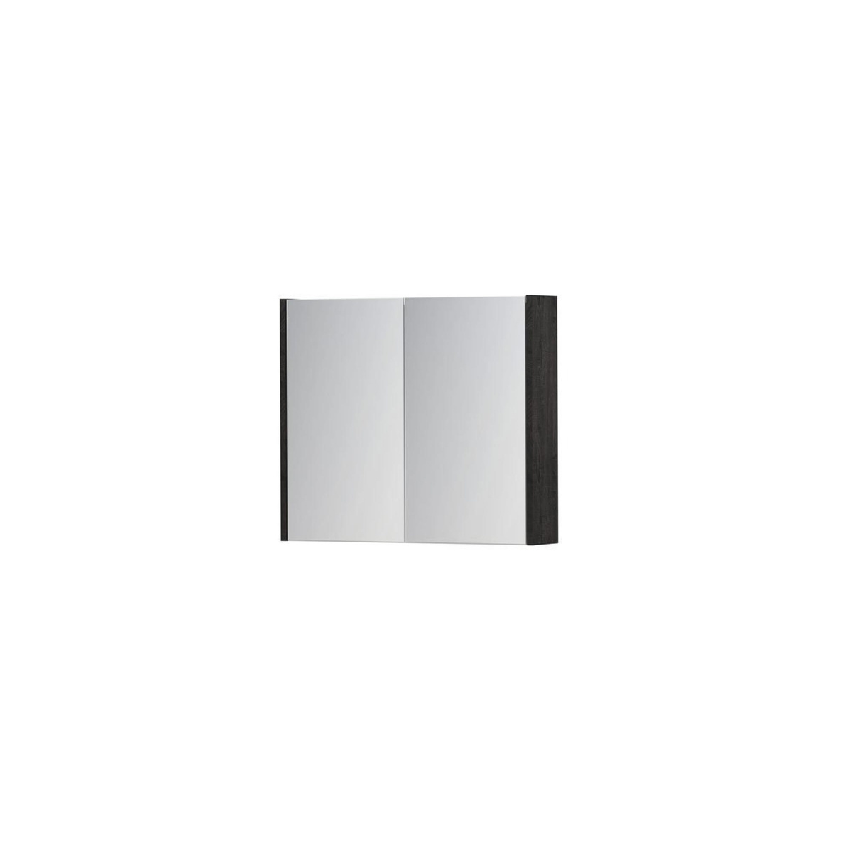 INK SPK1 Spiegelkast - 70x14x60cm - 2 deuren - dubbelzijdige Spiegel - schakelaar en stopcontact - MFC Houtskool eiken
