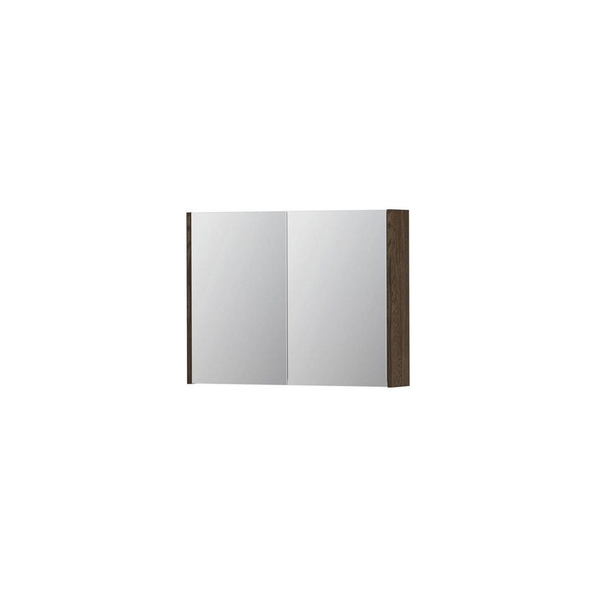 INK SPK1 Spiegelkast - 80x14x60cm - 2 deuren - dubbelzijdige Spiegel - schakelaar en stopcontact - Massief Eiken - eiken charcoal