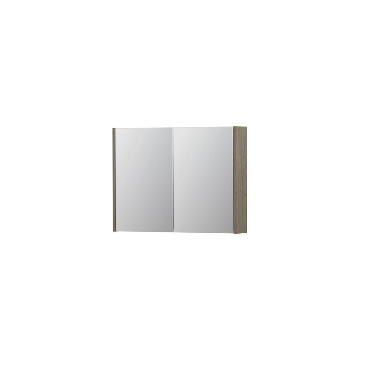 INK SPK1 Spiegelkast - 80x14x60cm - 2 deuren - dubbelzijdige Spiegel - schakelaar en stopcontact - MFC - Greige eiken