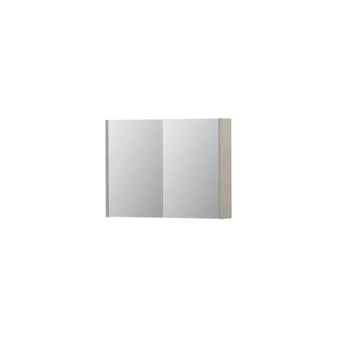 INK SPK1 Spiegelkast - 80x14x60cm - 2 deuren - dubbelzijdige Spiegel - schakelaar en stopcontact - MFC krijtwit