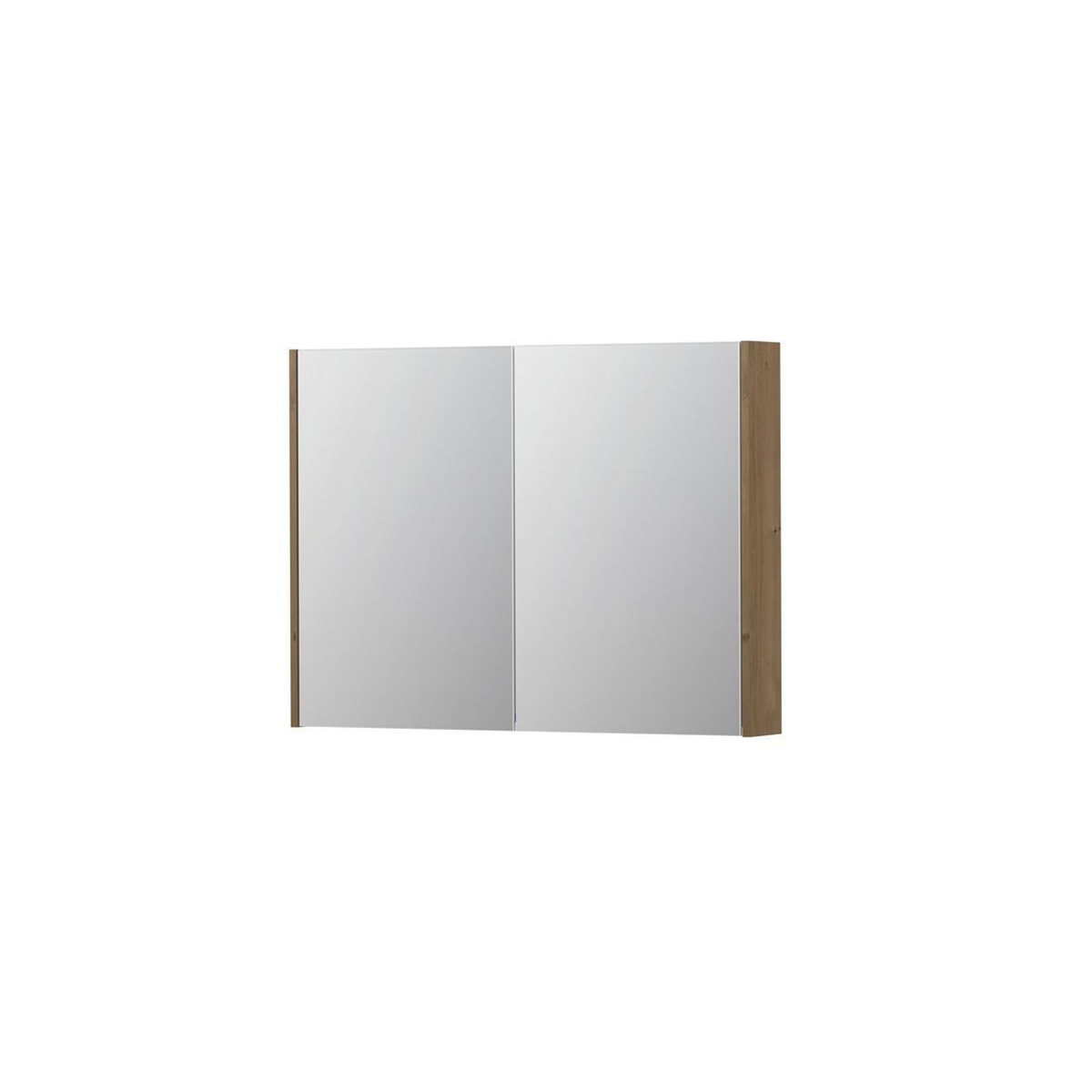 INK SPK2 Spiegelkast - 100x14x74cm - 2 deuren - dubbelzijdige Spiegel - schakelaar en stopcontact - MDF - Fineer Ash grey