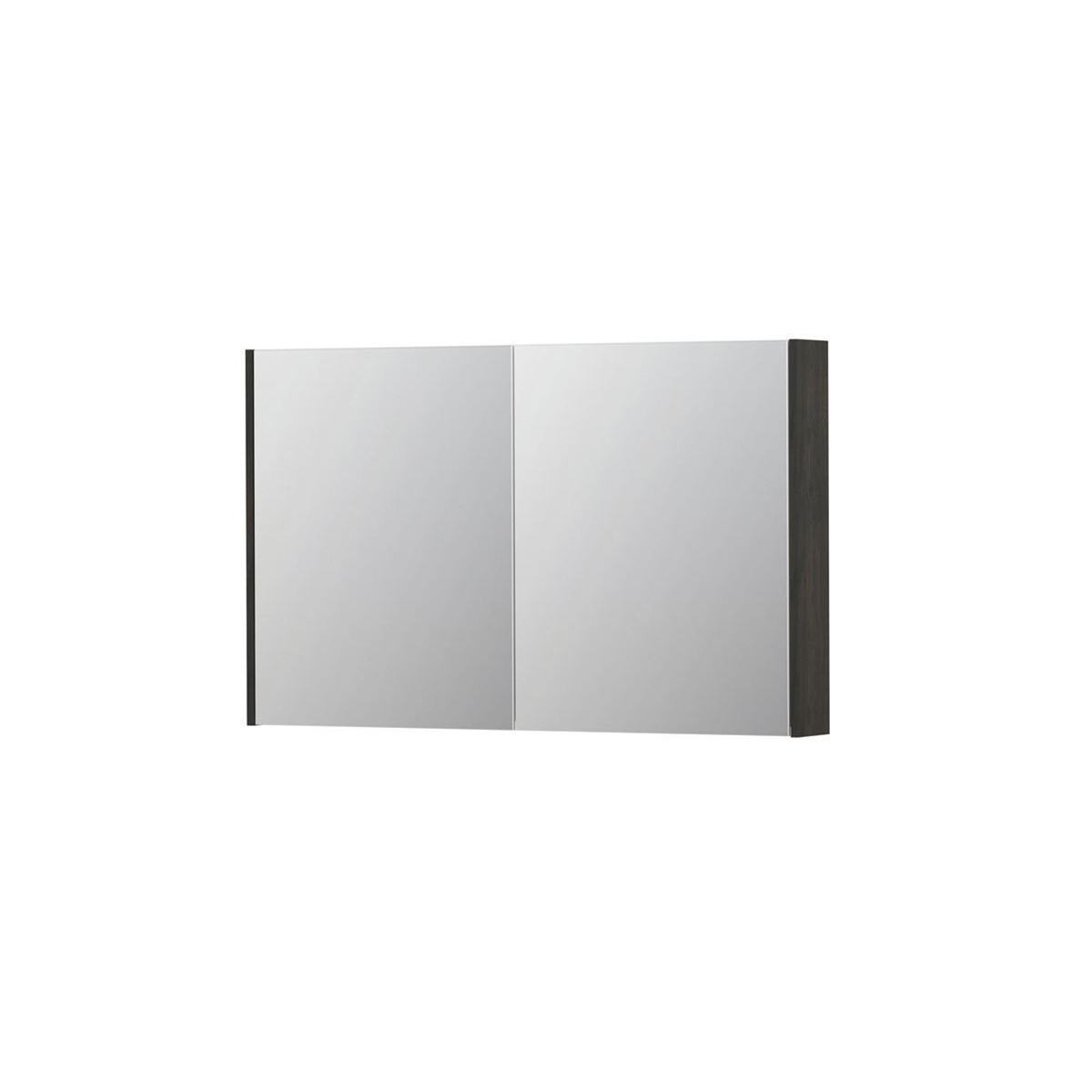 INK SPK2 Spiegelkast - 120x14x74cm - 2 deuren - dubbelzijdige Spiegel - schakelaar en stopcontact - MFC - Gerookt eiken