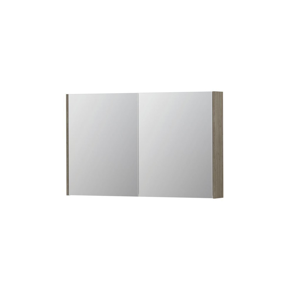 INK SPK2 Spiegelkast - 120x14x74cm - 2 deuren - dubbelzijdige Spiegel - schakelaar en stopcontact - MFC - Greige eiken