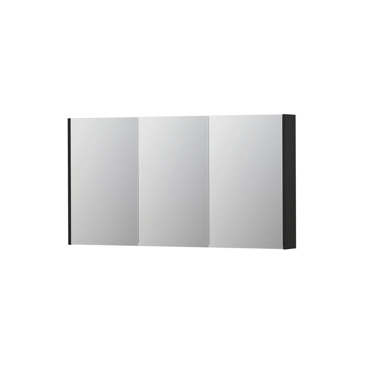 INK SPK2 Spiegelkast - 140x14x74cm - 3 deuren - dubbelzijdige Spiegel - schakelaar en stopcontact - MDF lak - Kleur Mat zwart