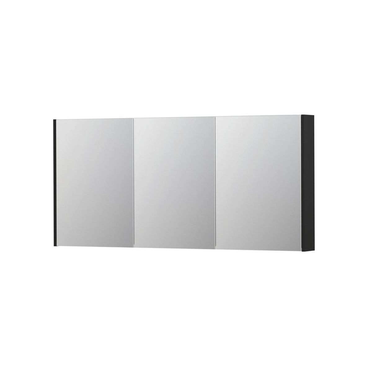 INK SPK2 Spiegelkast - 160x14x74cm - 3 deuren - dubbelzijdige Spiegel - schakelaar en stopcontact - MDF lak - Kleur Mat zwart