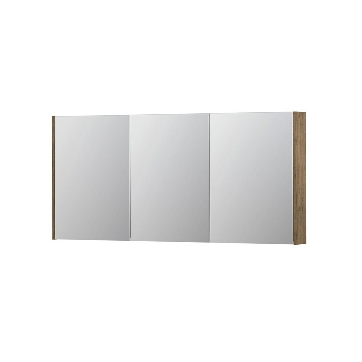 INK SPK2 Spiegelkast - 160x14x74cm - 3 deuren - dubbelzijdige spiegel - schakelaar en stopcontact - MFC - Naturel eiken