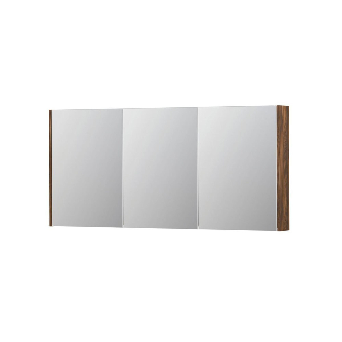 INK SPK2 Spiegelkast - 160x14x74cm - 3 deuren - dubbelzijdige Spiegel - schakelaar en stopcontact - MFC - Noten