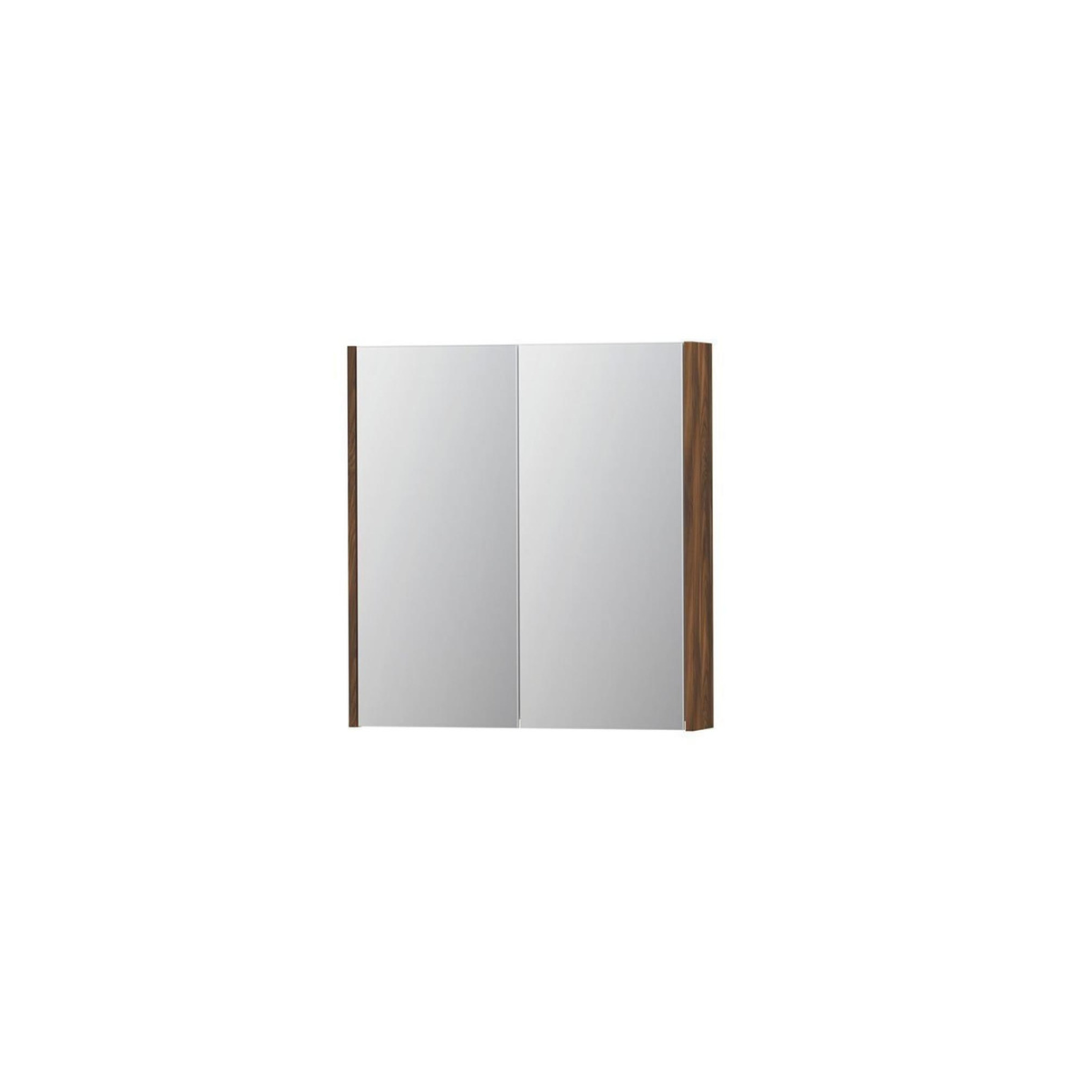 INK SPK2 Spiegelkast - 70x14x74cm - 2 deuren - dubbelzijdige Spiegel - schakelaar en stopcontact - MFC - Noten