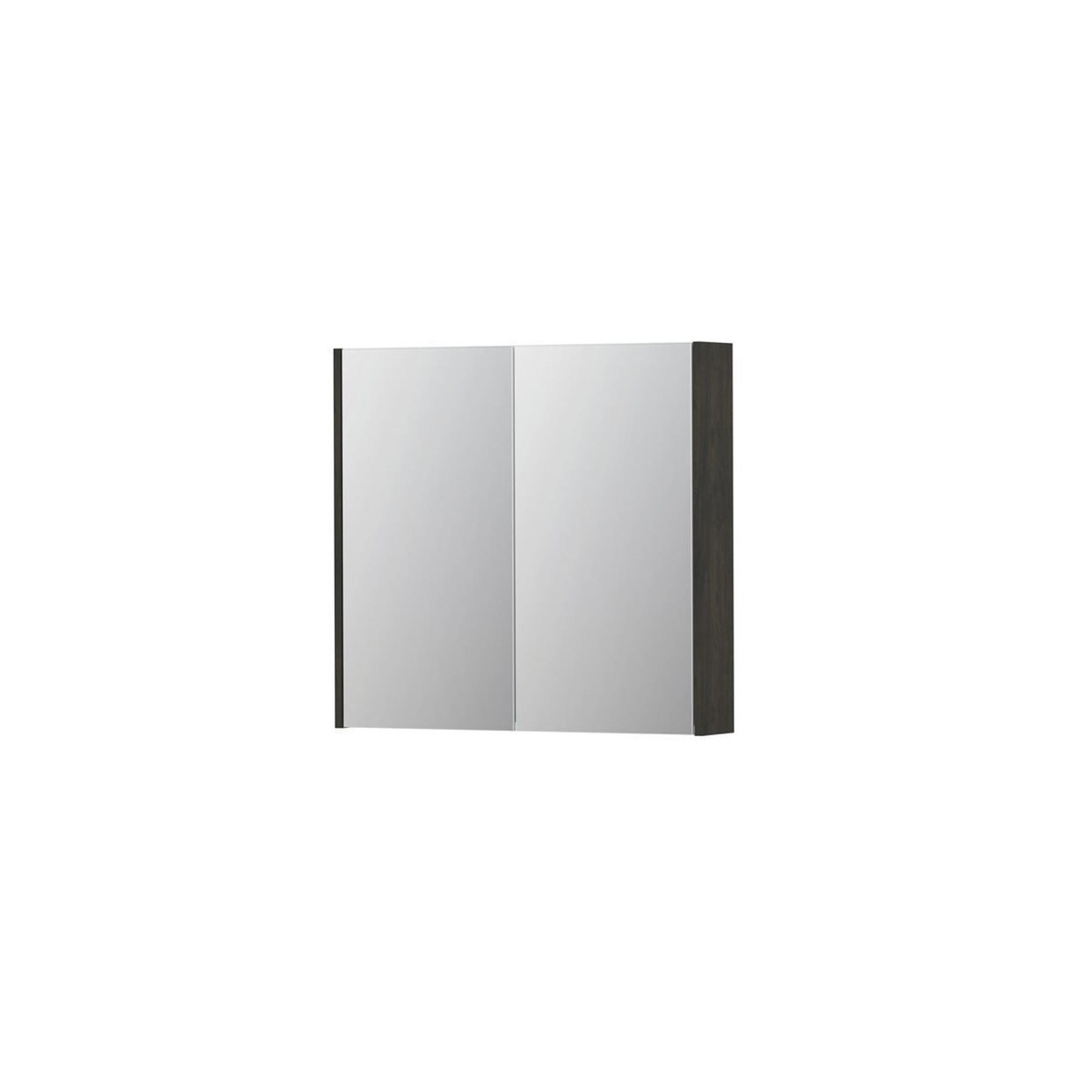 INK SPK2 Spiegelkast - 80x14x74cm - 2 deuren - dubbelzijdige Spiegel - schakelaar en stopcontact - MFC - Gerookt eiken