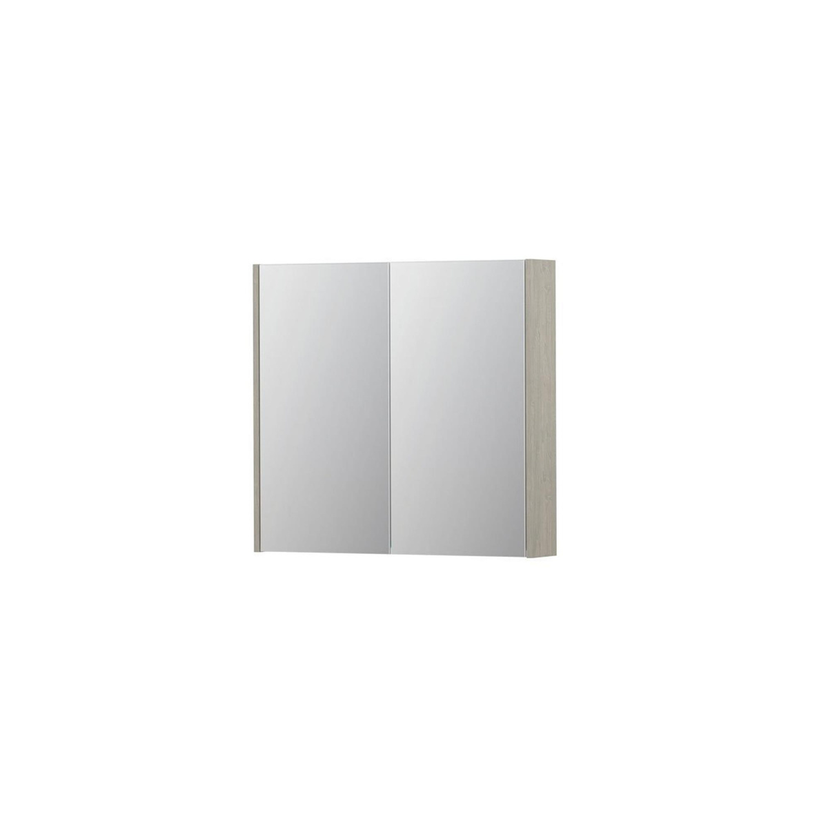 INK SPK2 Spiegelkast - 80x14x74cm - 2 deuren - dubbelzijdige Spiegel - schakelaar en stopcontact - MFC krijtwit