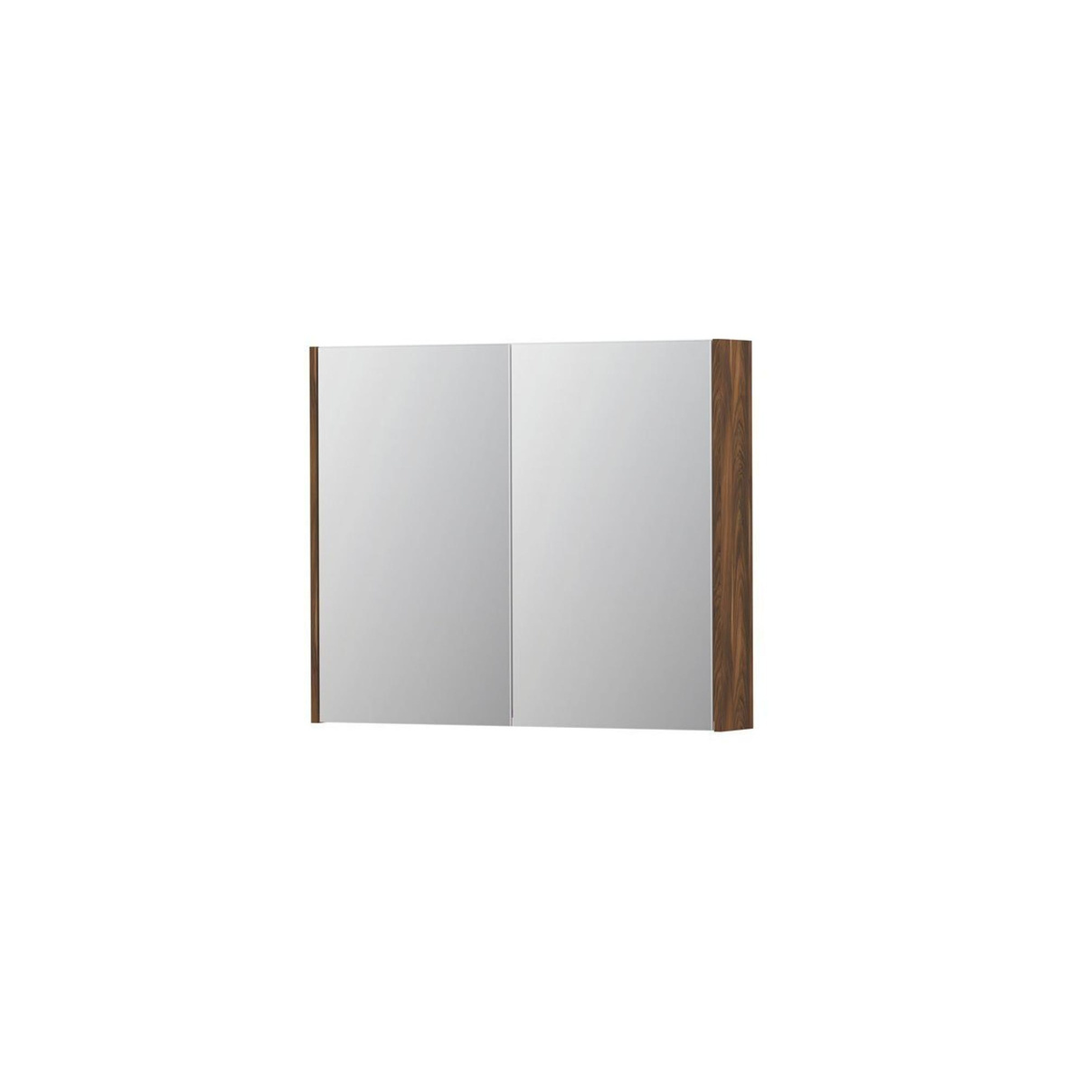 INK SPK2 Spiegelkast - 90x14x74cm - 2 deuren - dubbelzijdige Spiegel - schakelaar en stopcontact - MFC Noten