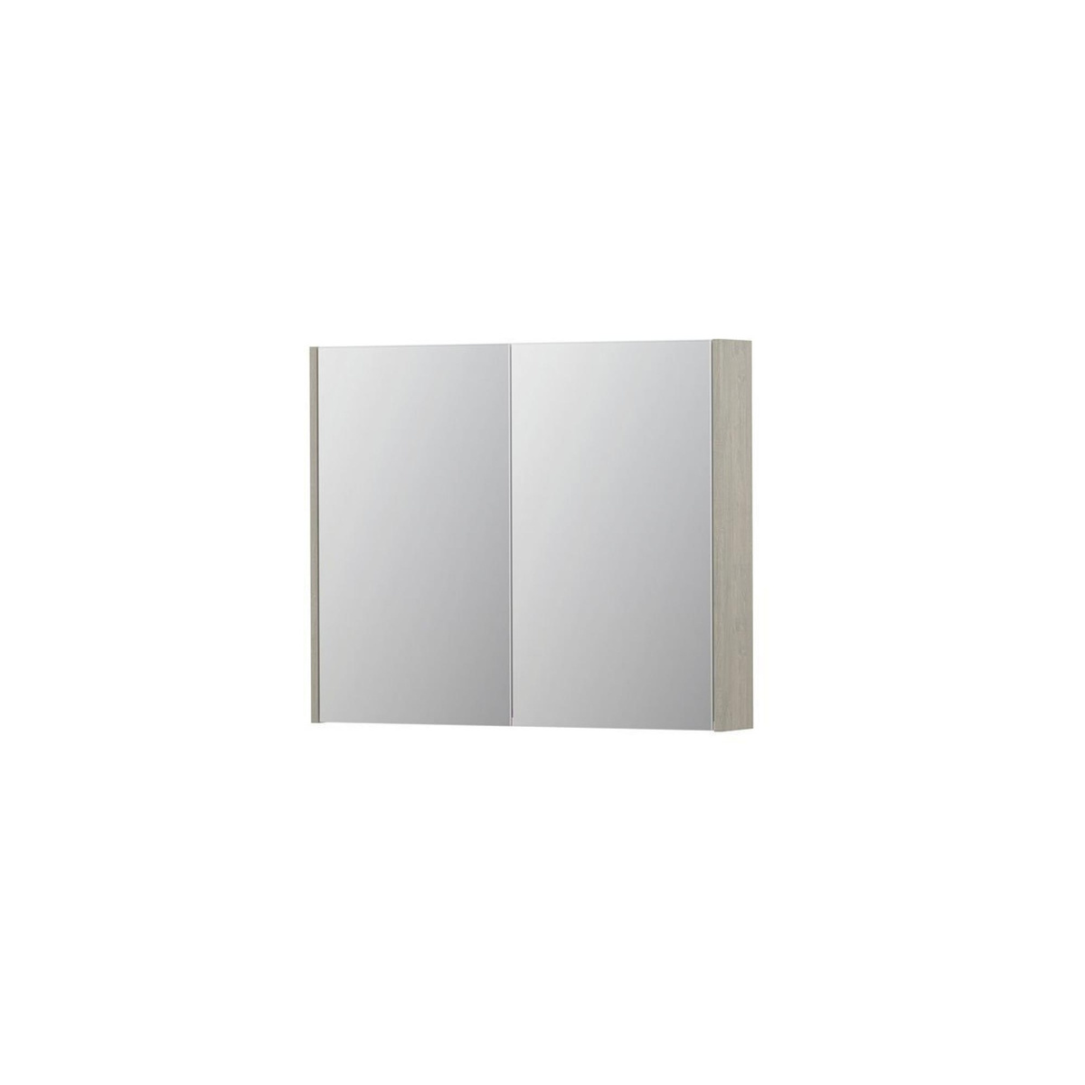 INK SPK2 Spiegelkast - 90x14x74cm - 2 deuren - dubbelzijdige Spiegel - schakelaar en stopcontact - MFC krijtwit
