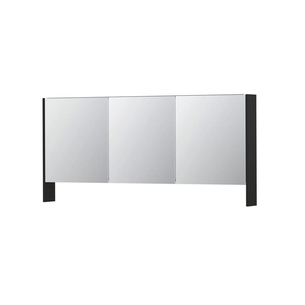 INK SPK3 Spiegelkast - 160x14x74cm - 3 deuren - dubbelzijdige Spiegel - open planchet - schakelaar en stopcontact - MDF lak - Kleur Mat zwart