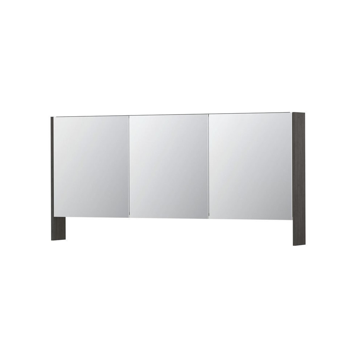 INK SPK3 Spiegelkast - 160x14x74cm - 3 deuren - dubbelzijdige Spiegel - open planchet - schakelaar en stopcontact - MFC - oergrijs