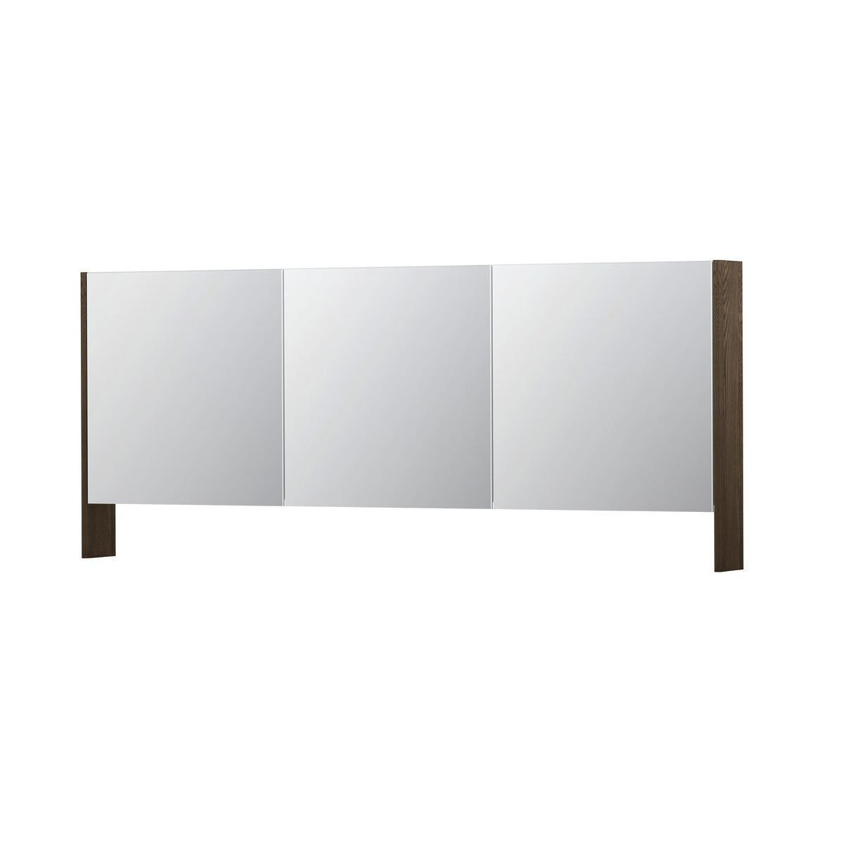 INK SPK3 Spiegelkast - 180x14x74cm - 3 deuren - dubbelzijdige Spiegel - open planchet - schakelaar en stopcontact - massief eiken - eiken charcoal