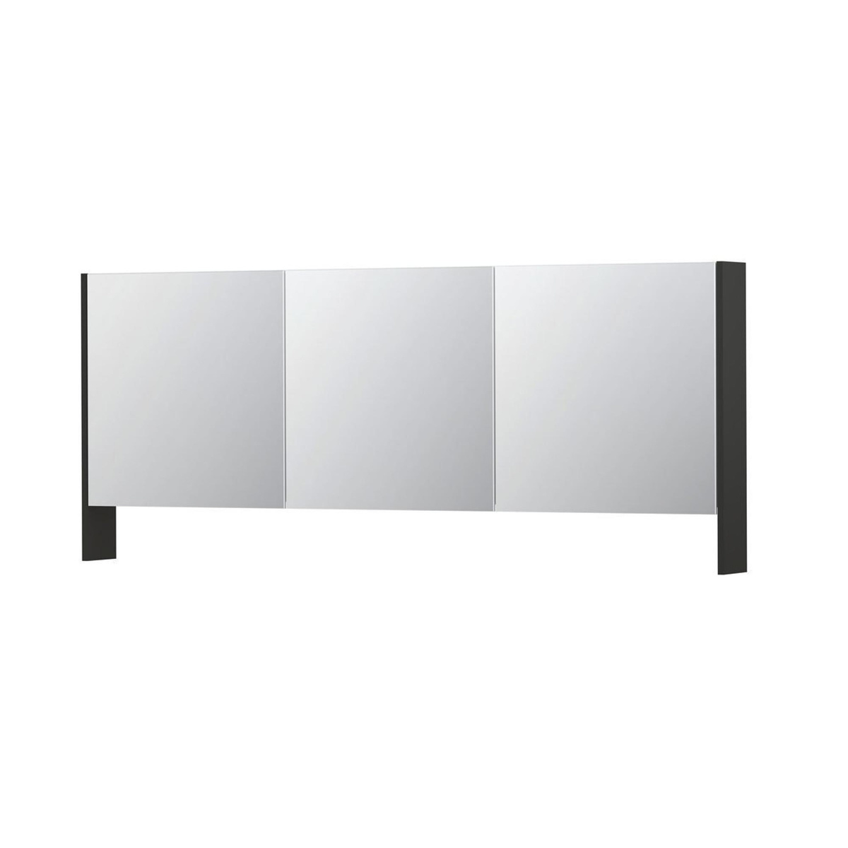 INK SPK3 Spiegelkast - 180x14x74cm - 3 deuren - dubbelzijdige Spiegel - open planchet - schakelaar en stopcontact - MDF lak - antraciet mat