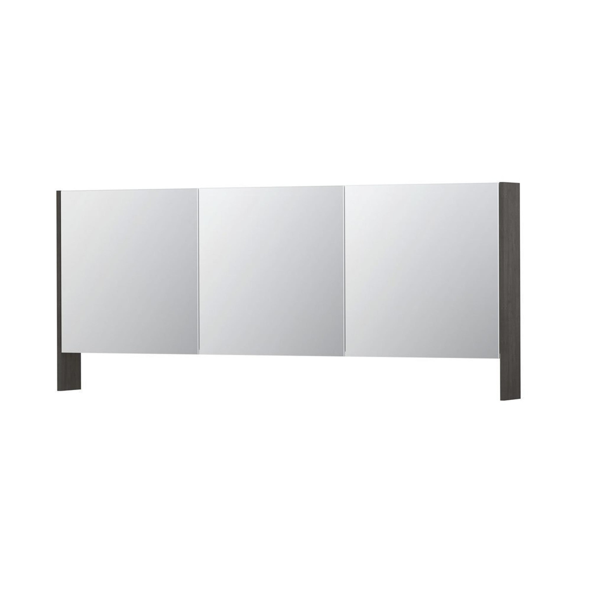 INK SPK3 Spiegelkast - 180x14x74cm - 3 deuren - dubbelzijdige Spiegel - open planchet - schakelaar en stopcontact - MFC - oergrijs