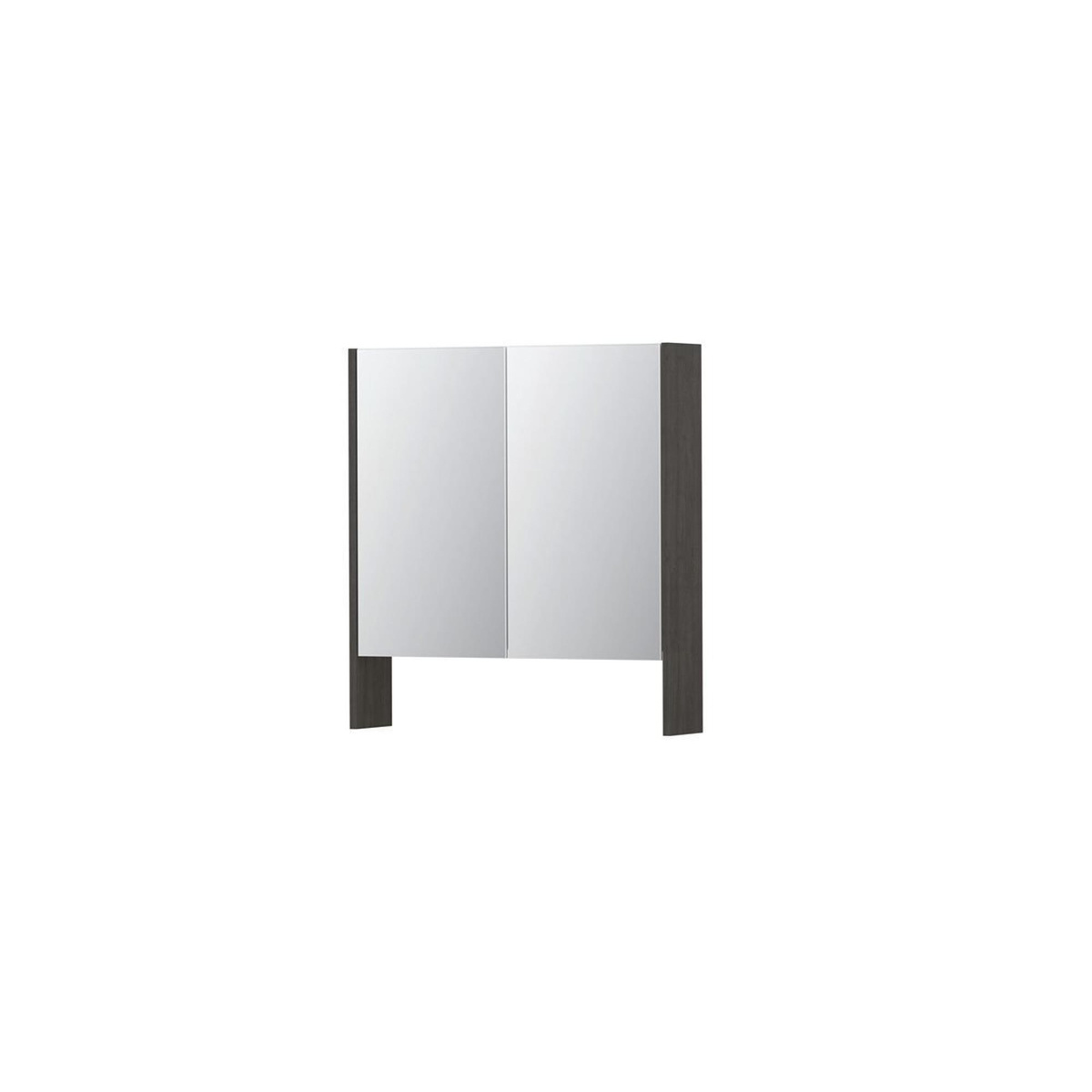 INK SPK3 Spiegelkast - 70x14x74cm - 2 deuren - dubbelzijdige Spiegel - open planchet - schakelaar en stopcontact - MFC - oergrijs