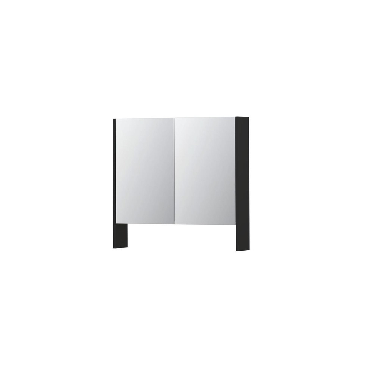 INK SPK3 Spiegelkast - 80x14x74cm - 2 deuren - dubbelzijdige Spiegel - open planchet - schakelaar en stopcontact - MDF lak - Kleur Mat zwart