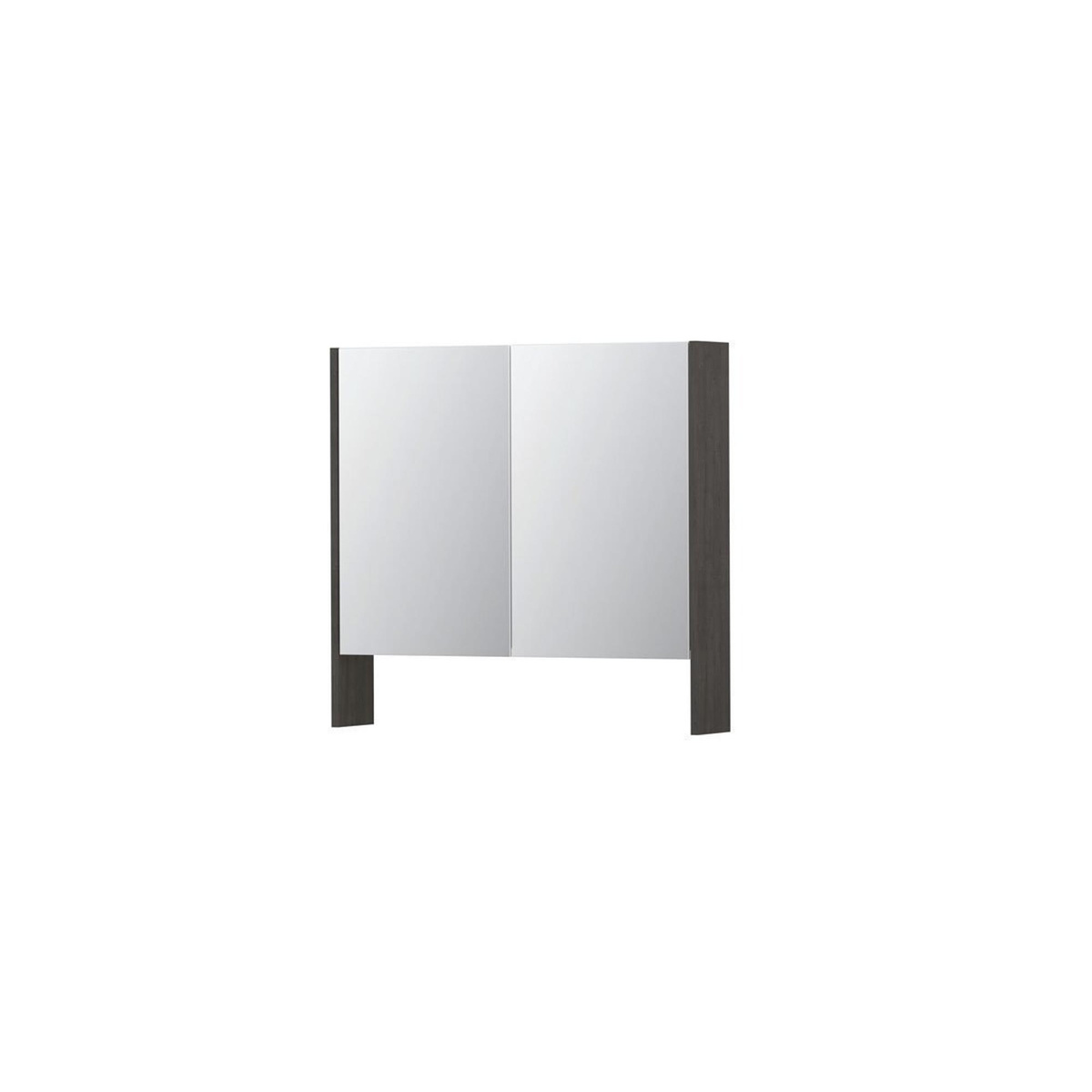 INK SPK3 Spiegelkast - 80x14x74cm - 2 deuren - dubbelzijdige Spiegel - open planchet - schakelaar en stopcontact - MFC - oergrijs