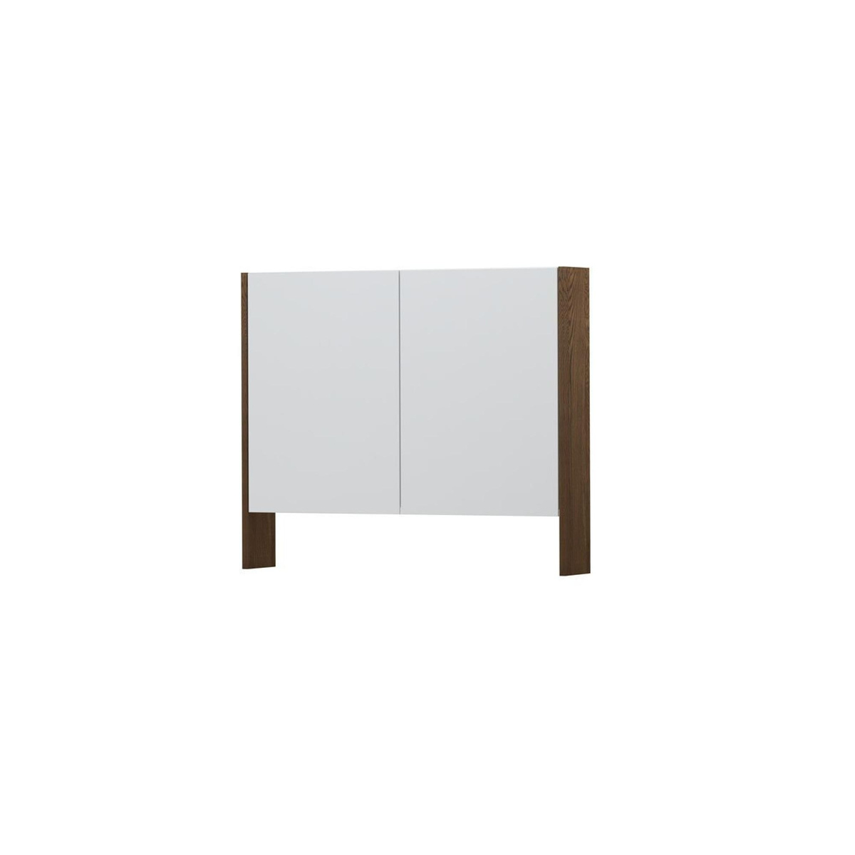 INK SPK3 Spiegelkast - 90x14x74cm - 2 deuren - dubbelzijdige Spiegel - open planchet - schakelaar en stopcontact - massief eiken - Kleur eiken chocolate