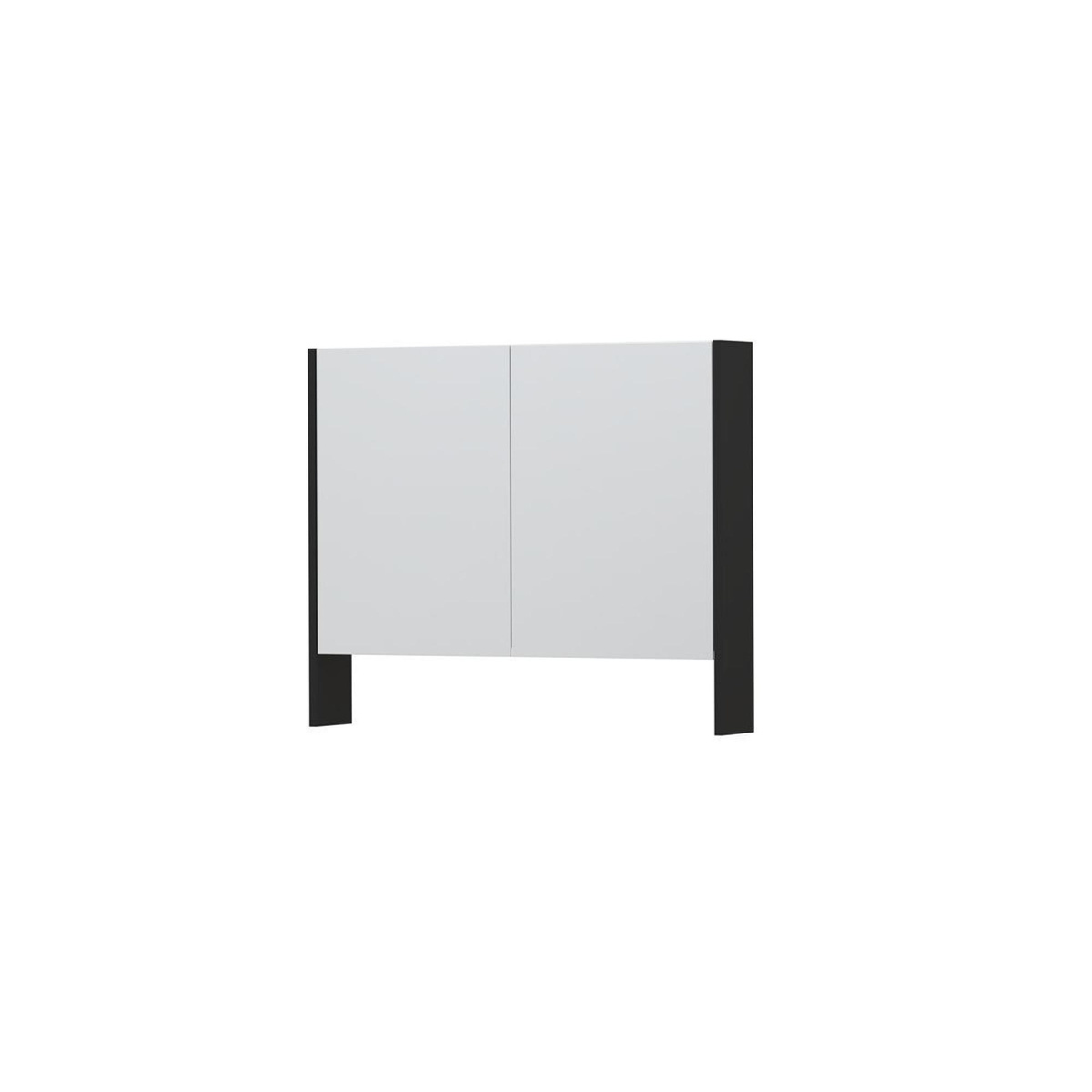 INK SPK3 Spiegelkast - 90x14x74cm - 2 deuren - dubbelzijdige Spiegel - open planchet - schakelaar en stopcontact - MDF lak - Kleur Mat zwart