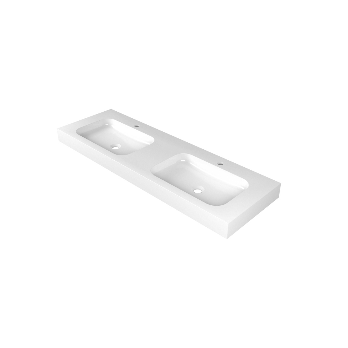 INK Tablet wastafel - 140x45x9cm - 2 wasbakken - 2 kraangaten - polystone - Kleur wit glans