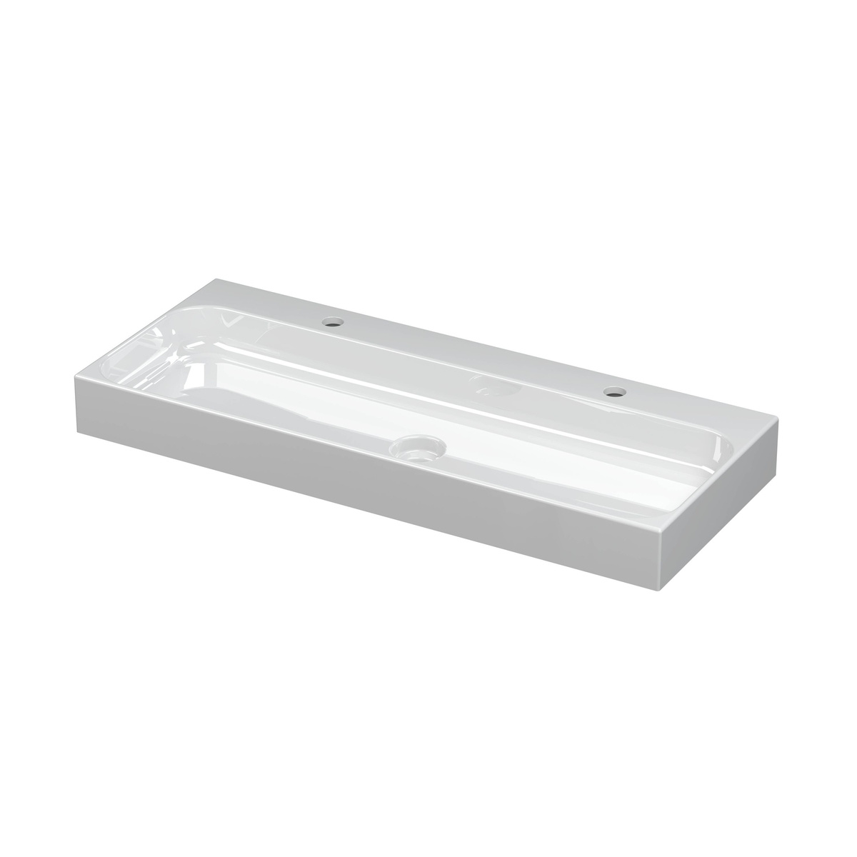 INK Unit wastafel - 100x40x10cm - 1 wasbak - 2 kraangaten - porselein wit glans - incl. porseleinen click plug