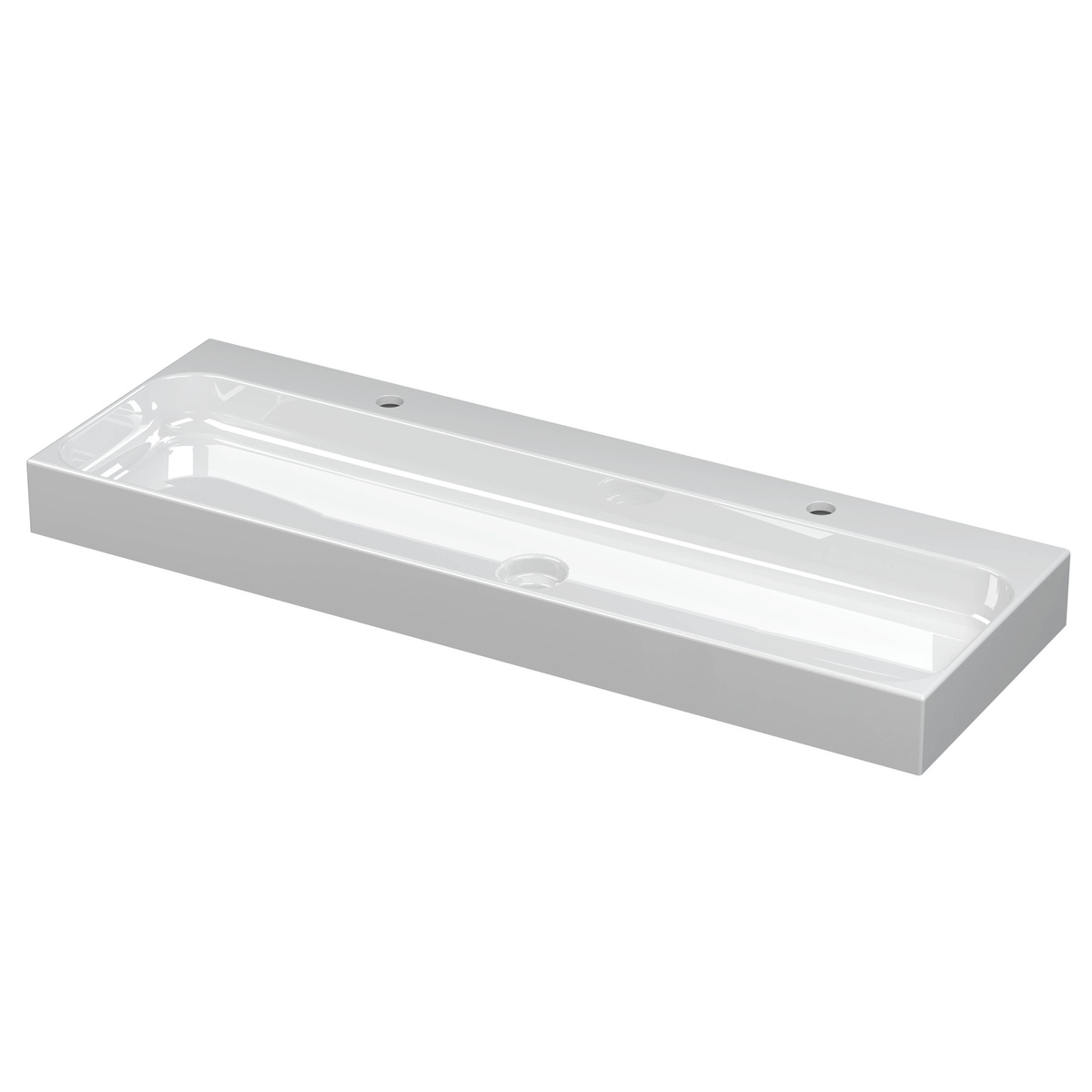 120x40x10cm - 1 wasbak - 2 kraangaten - porselein - Kleur: wit glans