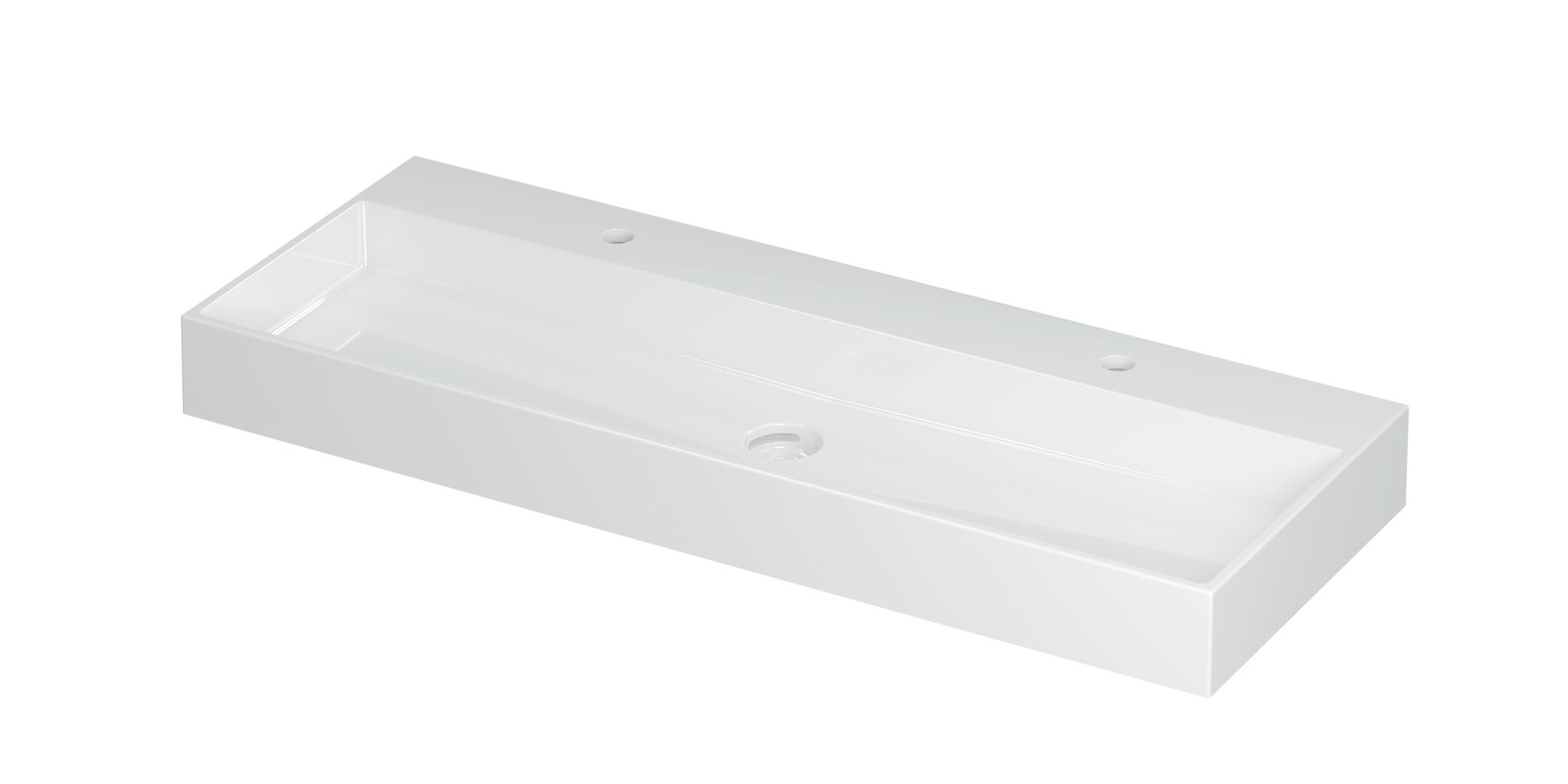 Met een breedte van 120 cm en een diepte van 45 cm is deze wastafel ideaal voor zowel kleine als grote badkamerruimtes. De hoogte van 11 cm zorgt voor gebruiksgemak. Het praktische afzetplateau aan de achterkant biedt extra ruimte voor uw toiletartikelen.