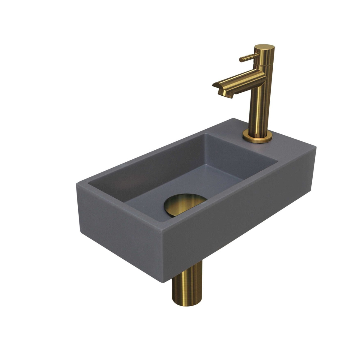 INK Versus Fonteinset - 36x18x9cm - wasbak links - 1 kraangat - Quartz grijs/mat goud