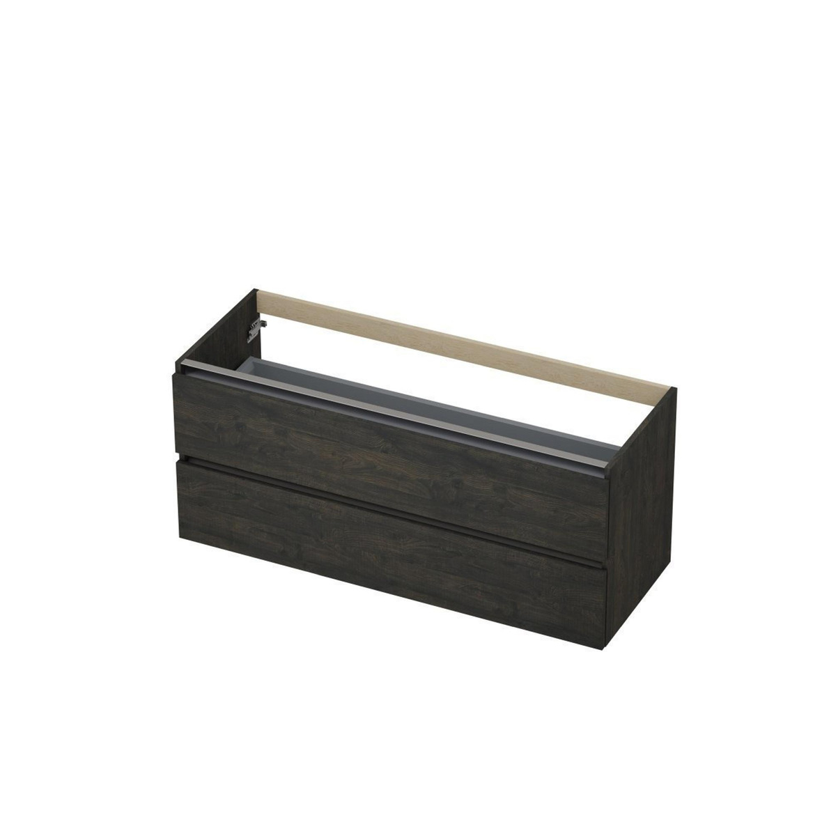 INK Wastafelonderkast - 120x45x52cm - 2 lades - greeploos - Aluminium keerlijst - MFC Gerookt eiken