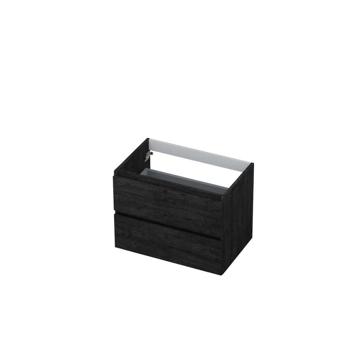 INK Wastafelonderkast - 70x45x52cm - 2 lades - greeploos - houten keerlijst - MFC Houtskool eiken