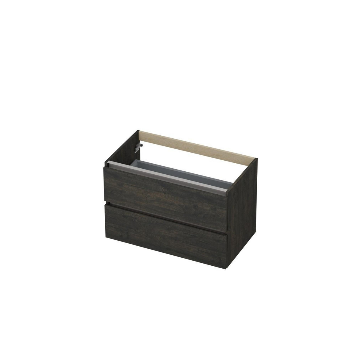 INK Wastafelonderkast - 80x45x52cm - 2 lades - greeploos - Aluminium keerlijst - MFC Gerookt eiken