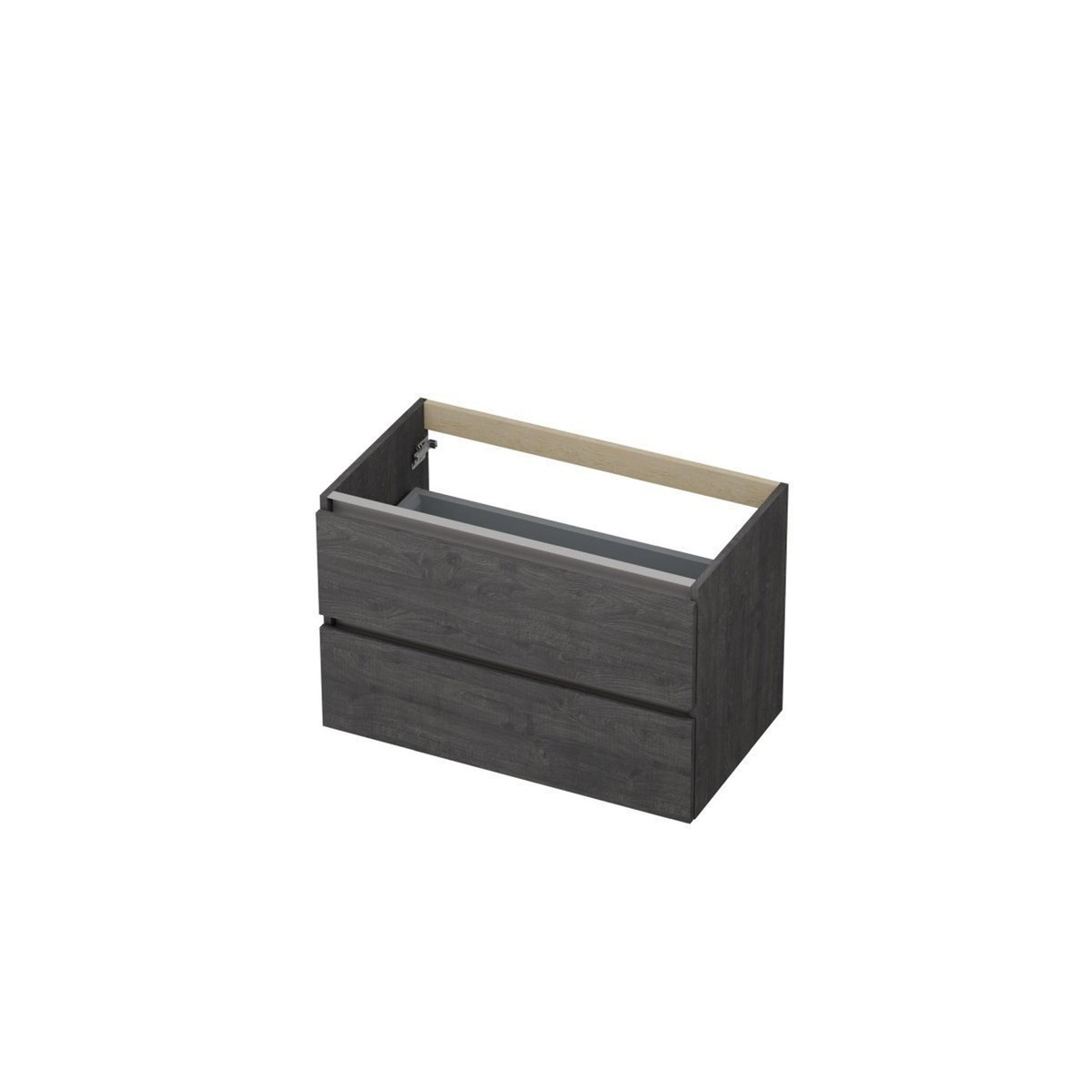 INK Wastafelonderkast - 80x45x52cm - 2 lades - greeploos - Aluminium keerlijst - MFC - oergrijs