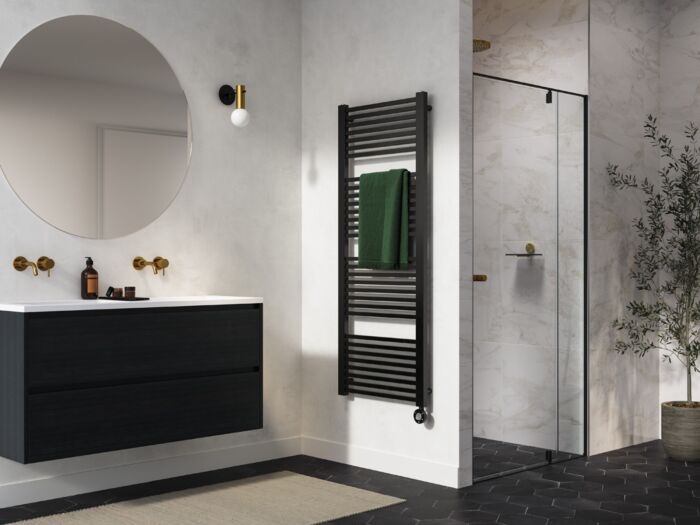 Offerte aanvraag voor Instamat Rim elektrische handdoekradiator met zwarte thermostaat 170x60cm soft zwart 1000W